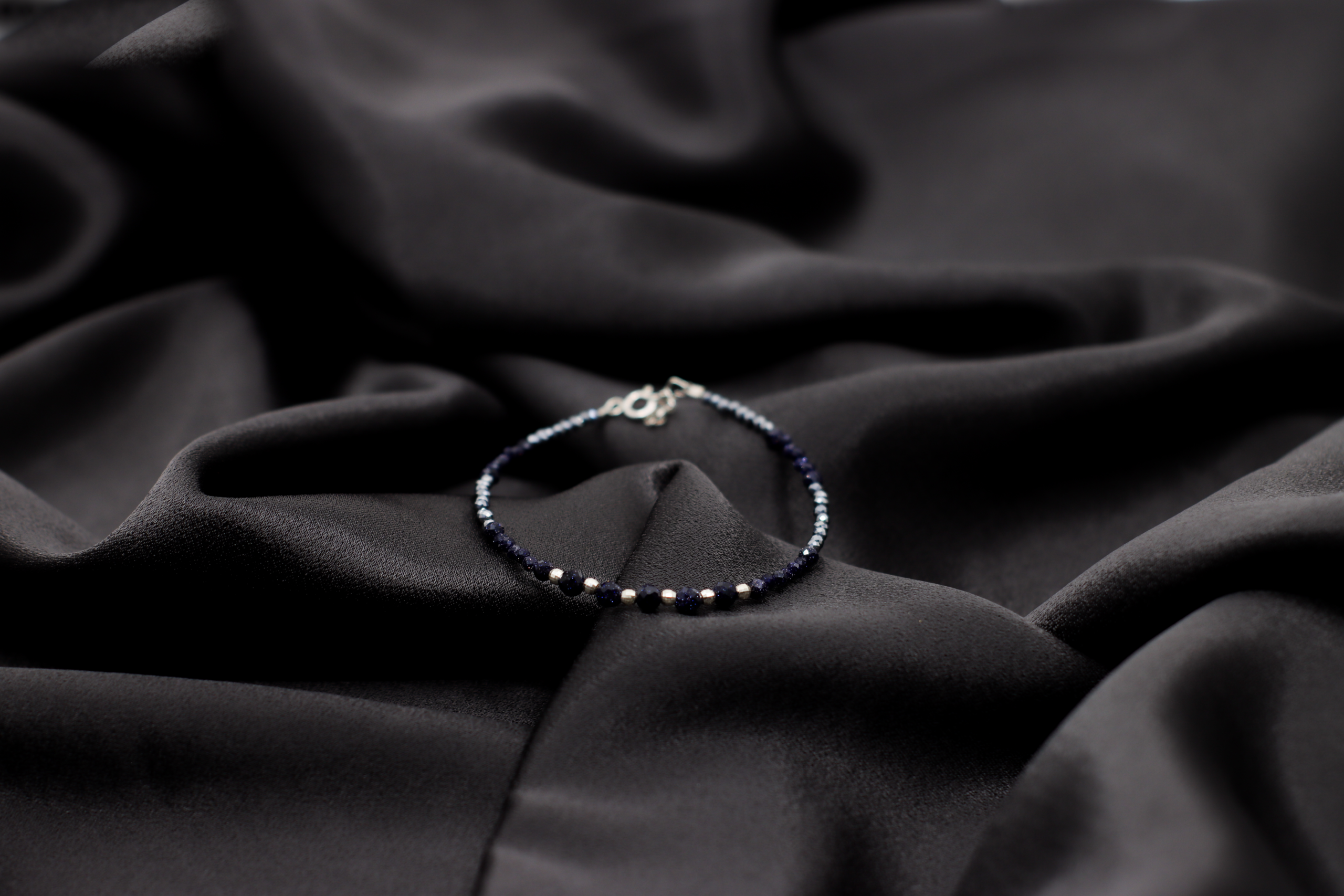 „Ocean Breeze” este o bratara ce evoca calmul și profunzimea marii. Piatra soarelui albastru si terahertz-ul se impletesc armonios, oferind nuante fascinante si un efect subtil de lumina, in timp ce bilutele din argint completeaza designul cu delicatete și rafinament. Această bratara este ideala pentru femeia care apreciaza bijuteriile cu personalitate, eleganta si un strop de mister.