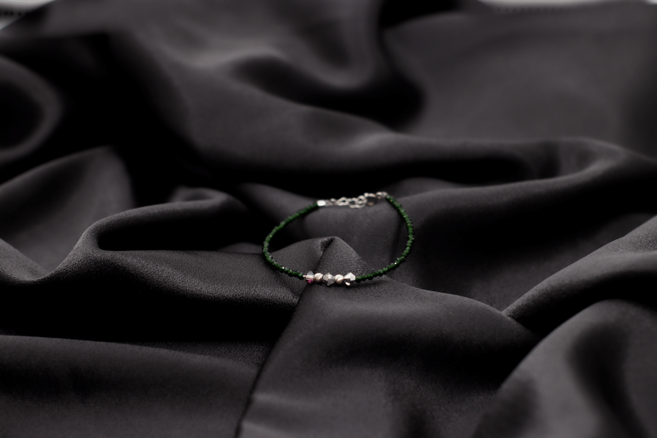 „Sunlight Forest” este o bratara ce aduce prospetime și energie fiecarei tinute. Piatra soarelui verde radiaza nuante vibrante, amintind de razele soarelui printre frunzis, în timp ce cristalele Preciosa adauga un joc subtil de lumina și eleganta. Bilutele fine din argint completeaza armonios compozitia, oferind o nota delicata si rafinată. Aceasta bratara este alegerea ideala pentru femeia care apreciaza bijuteriile cu personalitate si stralucire discreta.