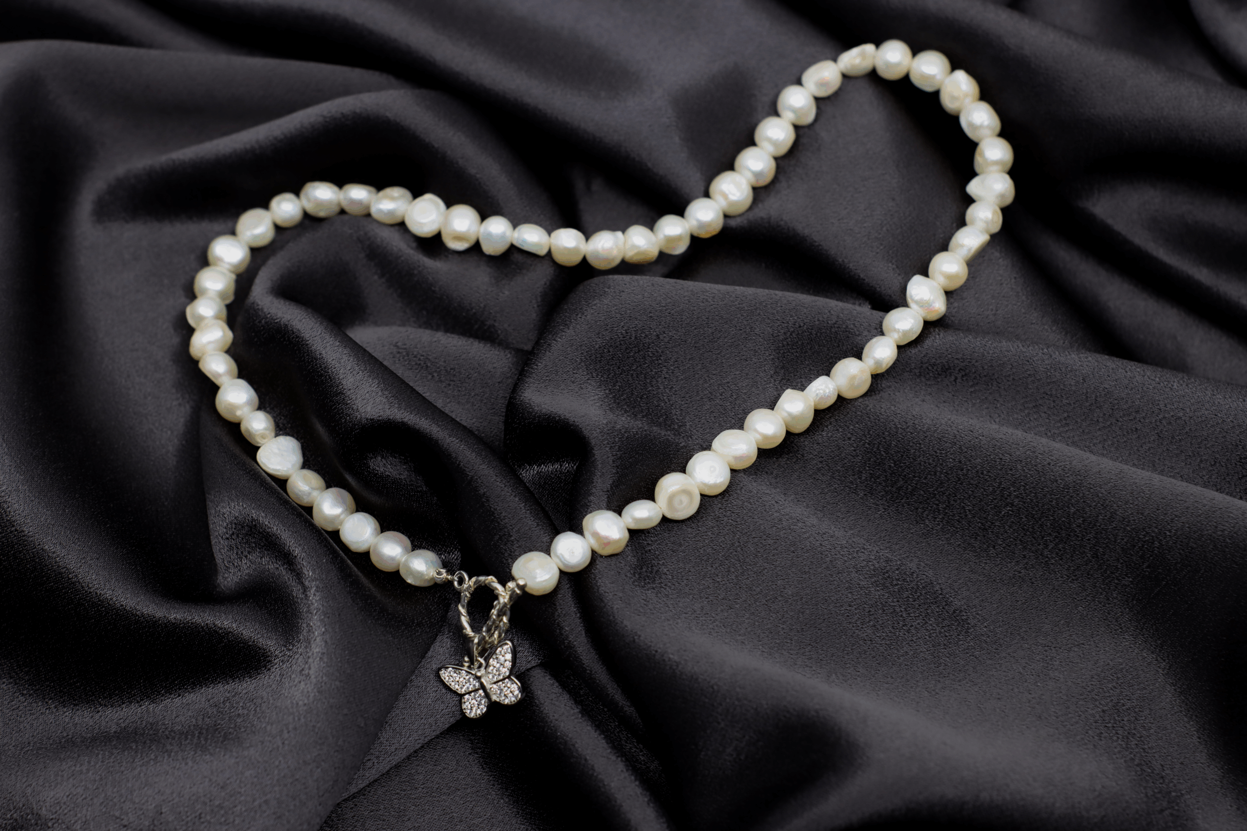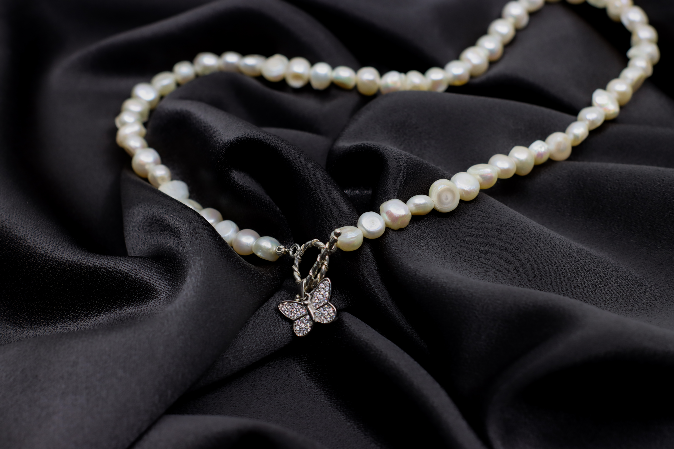 „Butterfly Dreams” îmbina frumusetea perlelor de cultura cu simbolismul elegant al unui fluture, reprezentand transformarea si libertatea. Pandantivul în forma de fluture, decorat cu zirconiu alb, reflecta lumina subtila, in timp ce perlele adauga un plus de rafinament. Inchiderea toggle din argint completeaza perfect acest colier, fiind atat functionala, cat si stilata.